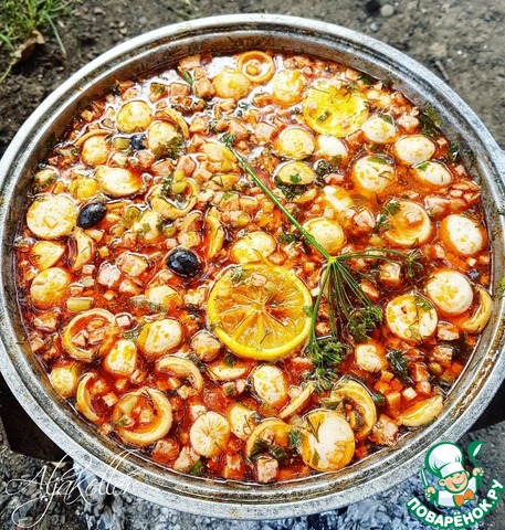 [+5]Из замен - вместо мяса у меня копчёная грудинка, вместо томатной пасты использовала помидоры в собственном соку, ну и пару долек лимона в самом конце по традиции.