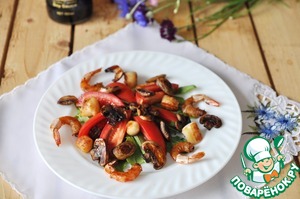Это салатик недавно попробовала в ресторане "Охотный двор", очень понравился, хотя, конечно, судя по названию, бюджетным его не назовёшь, но думаю, кому-то пригодится для праздничного стола или романтического ужина.