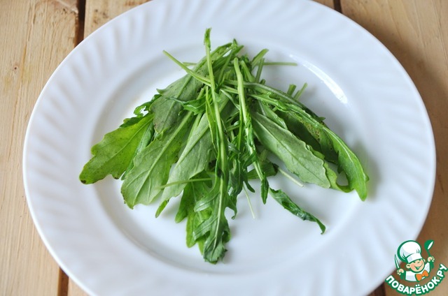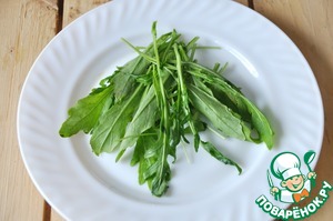 Рукколу моем, обсушиваем, кладём на тарелку. -