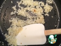Пока подходит тесто, делаем начинку. На самом деле начинка может быть любая! Мы же делаем овощную: мелко рубленный лук и чеснок дожариваем на небольшом количестве масла на среднем огне до прозрачности.