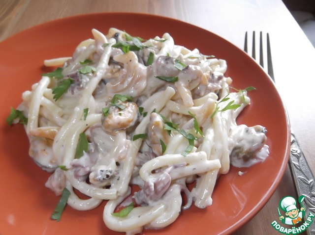 Рецепт «Морской коктель с сырным соусом и макаронами»: