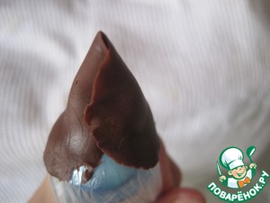 Снимаем с выемки, убираем пакет, смотрим если есть небольшие отверстия замазываем растопленным шоколадом