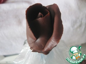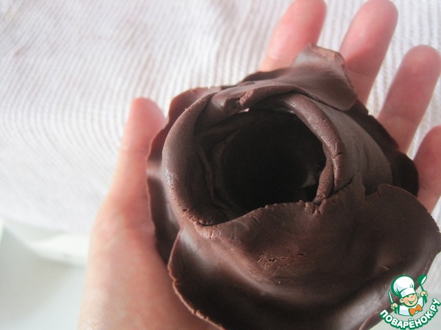 Чтобы в розах получилось углубление берем какую нибудь выемку, одеваем пакет, чтобы потом розы хорошо снимались и не приклеивались к выемке.