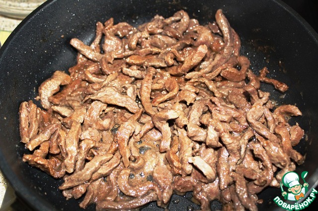 • Мясо обжариваю на сковороде в горячем растительном масле до "легкой" корочки.