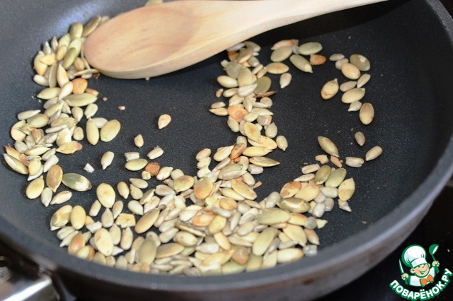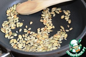Семечки тыквы и подсолнечника немного поджариваю на сухой сковороде.