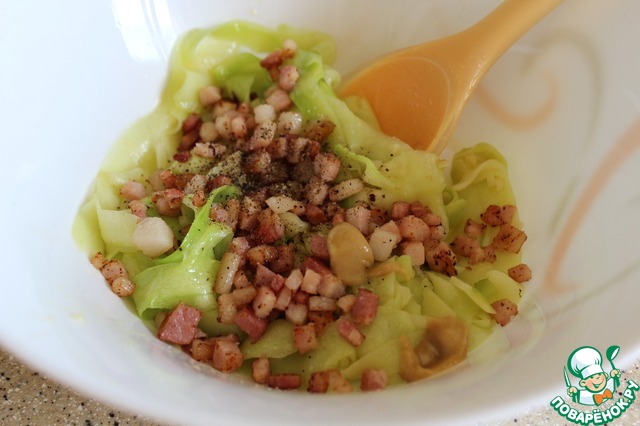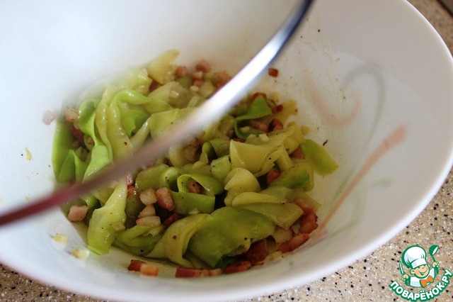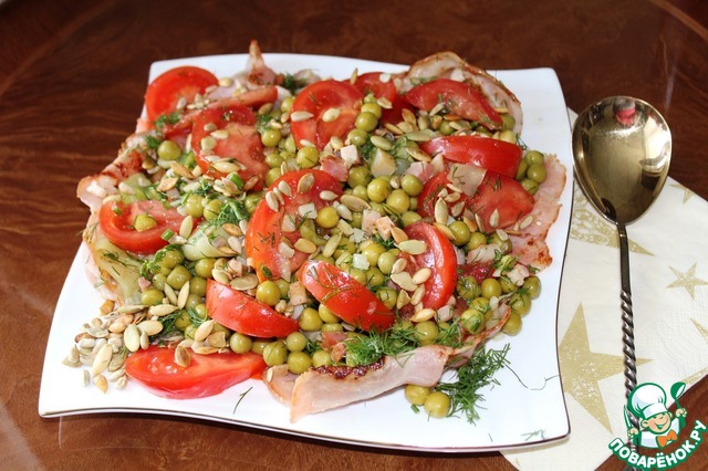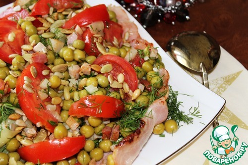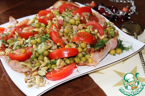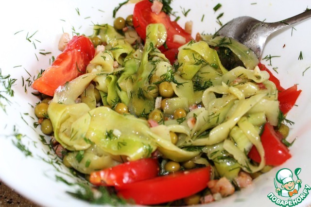 Рецепт «Салат из кабачков, зеленого горошка и бекона»: