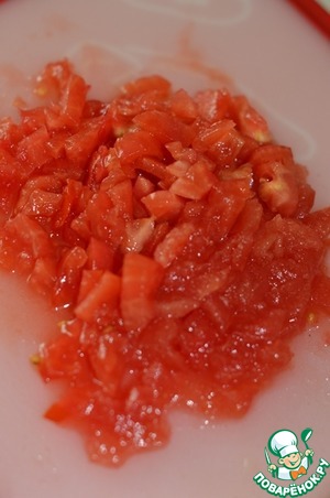 2. С помидоров снять кожицу, удалить семена и нарезать кубиком.