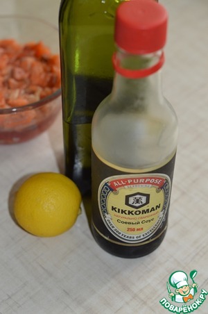 Для заправки смешать соевый соус, масло и лимонный сок и приправить по вкусу. -