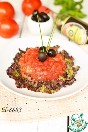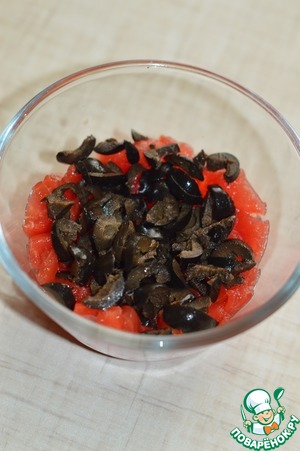 Рецепт «Салат с малосольной семгой, маслинами и помидорами»: