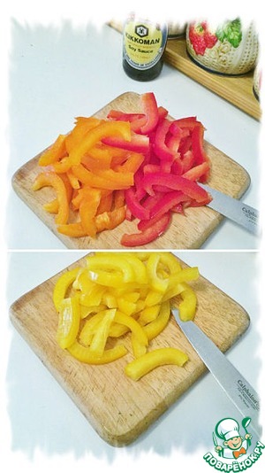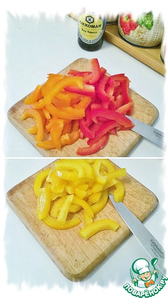 - Перец болгарский (по половинки каждого цвета - красный, жёлтый , оранжевый) — 1.5 шт