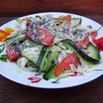 Яркое солнце, синее небо, теплый воздух- все это вдохновляет нас на легкость в душе и теле. Хочется творить, влюбляться, мечтать и воплощать все это в еде. Так и родился рецепт свежего салата с пикантной заправкой.