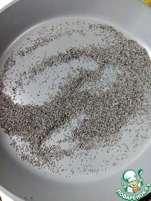 Готовим заправку. Мак нагреть на сковороде примерно минуту, периодически помешивая.