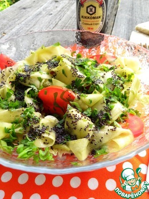 Сверху живописно выкладываем ленточки кабачка.