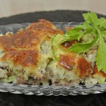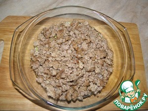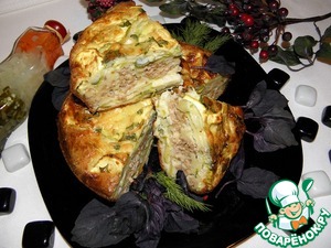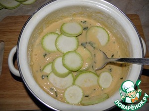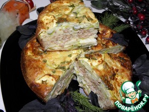Мясную начинку заранее отварить, или обжарить. Подготовить форму, смазать растительным маслом, если делаете с начинкой, то половину кабачкового теста выкладываете в низ, в середину начинку, а верх вторую половину теста. Если без начинки, то просто выкладываете в форму.