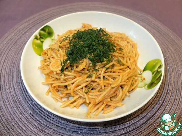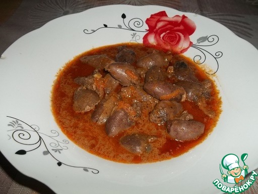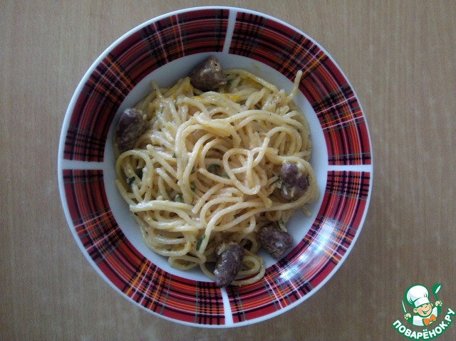 Рецепт «Спагетти с куриными сердечками в соусе»:
