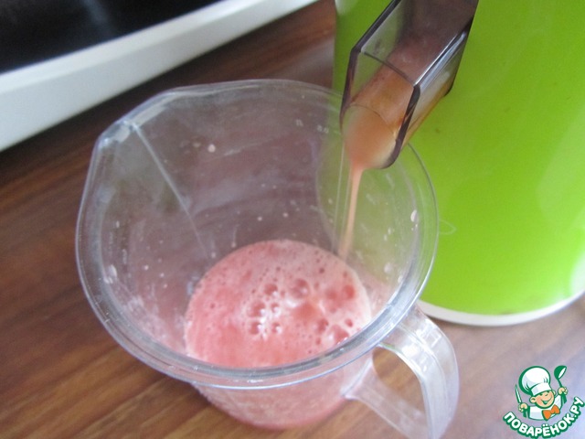 Вот так выглядит наш маринад после соковыжималки. Необходимо его хорошо перемешать и он станет "зеленым".