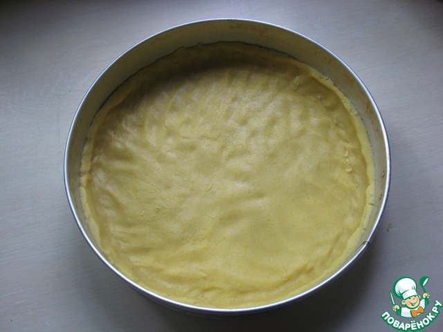 Замешиваем тесто. Выкладываем форму паргаментом. Формируем основу для нашего тарта.