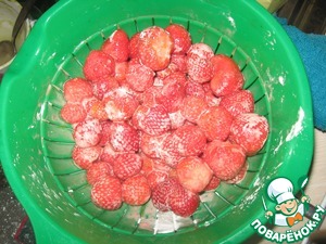 Чтобы ягоды клубники не потекли я их немного посыпаю крахмалом. Можно использовать как кукурузный, так и картофельный
