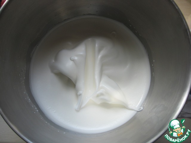 Начинаем готовить меренгу. Для начала взбиваем белки в пышную пену