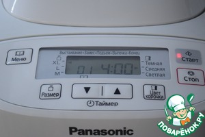 Выбираем режим "Основной хлеб", размер - XL (в моей ХП это примерно на 600-700 г муки), цвет корочки - по желанию.
