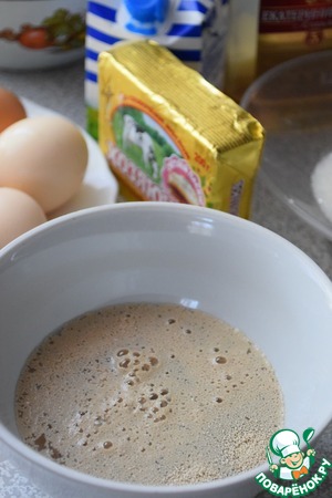Растворим дрожжи в теплой воде (35-40°С). Дадим постоять 5-10 мин.