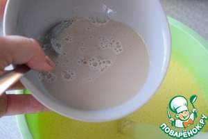 Выльем дрожжи с водой, еще раз перемешаем.