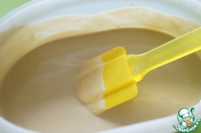 Затем в отдельное чаше растворяем кофе в воде и вливаем ко второй массе.