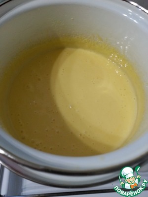 смутило взбивание желтков на бане.. вот тут очень не хватает подробностей - как долго? до какого состояния? я с баней не дружу, сначала делала на ней, не понимала, что надо в итоге то получить, перелила в толстостенную кастрюлю и там все доделала - так в принципе всегда и поступаю, отлично справляется. и сливки добавила 500, а не 400 - все, что было в пачке, так удобнее, чем оставлять 100мл - ни туда, ни сюда..