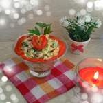 В этот салат можно влюбиться с первой ложки, оттуда и название. Салат очень прост и быстр в приготовлении, доступные ингредиенты. Попробуйте - и Вы так же почувствуете "Влюбленность".