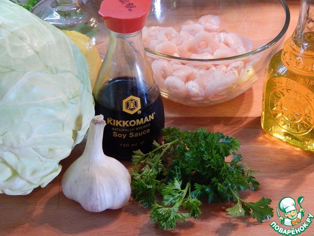 Ингредиенты для «Салат из молодой капусты с креветками»: