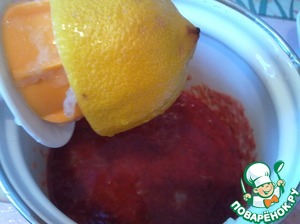 Переложить разбухший желатин в горячее клубничное пюре и перемешать до полного растворения. Не кипятить!