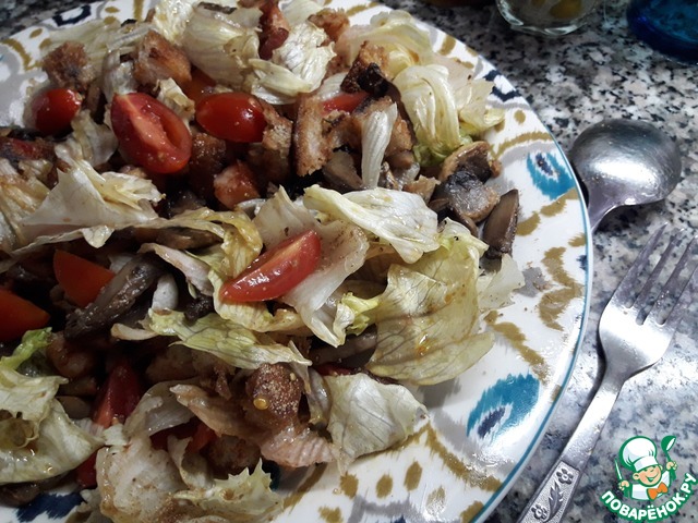 Рецепт «Теплый салат с беконом и шампиньонами»: