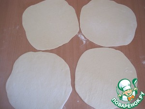 • Раскатываем на тонкие круглые лепешки с размером вашей сковороды