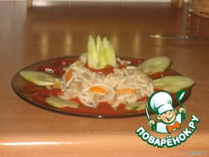 Украшаем свежим огурчиком и кетчупом.Приятного аппетита!