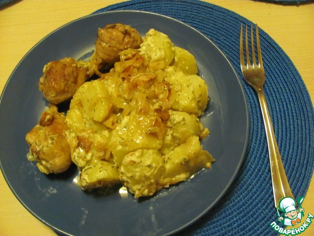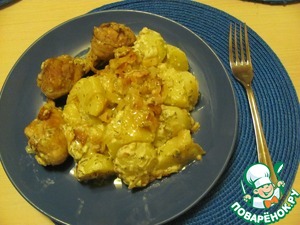 Вкусная нежная картошечка с мясом и нежным подкопченым соусом.