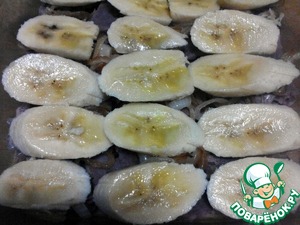Вылить соус в форму поверх банана и посыпать тертым сыром.