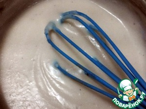 Снимаем с огня и вливаем маленькими порциями молоко и растираем венчиком.