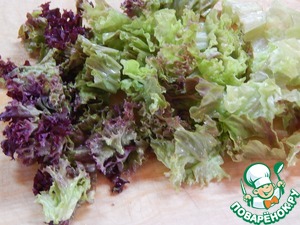 Салат (у меня лолло - россо) измельчить.