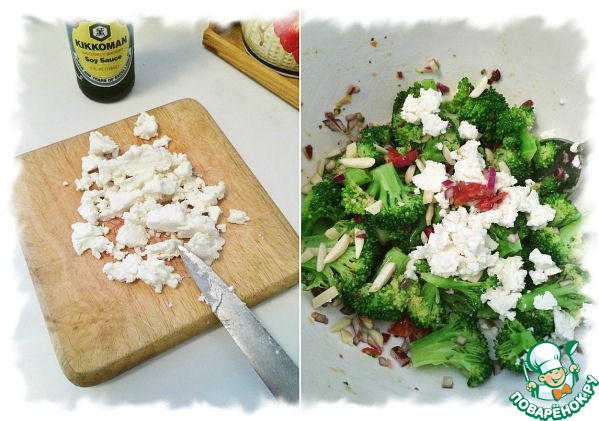 Брынзу покpошить. Добавить брынзу и миндаль к салату и ещё раз перемешать.