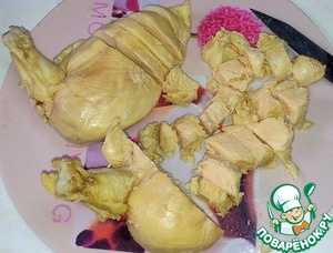 - Курица (филе жареное) — 300 г