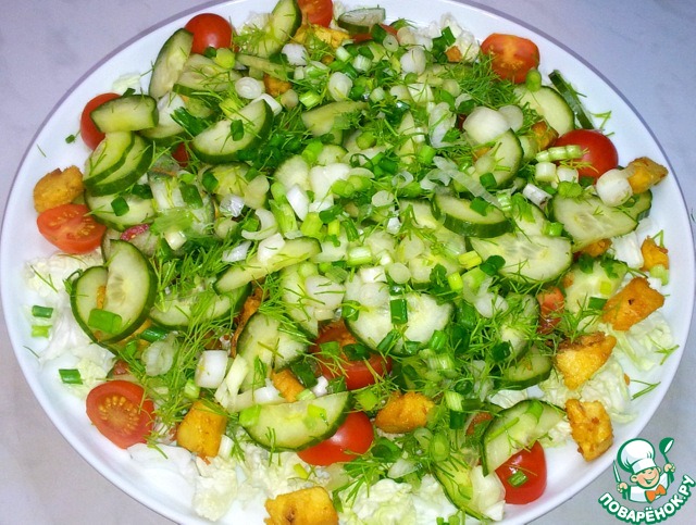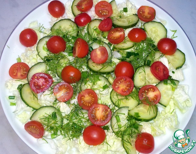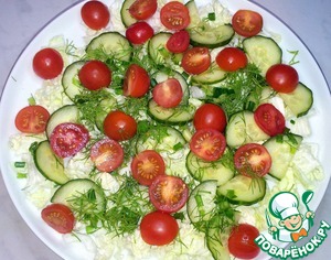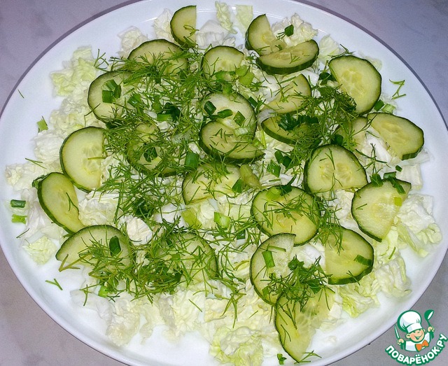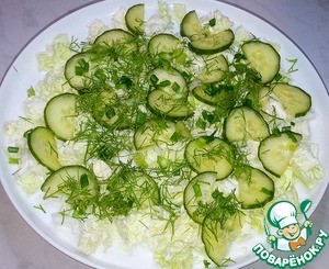 Теперь снова огурцы и зелень.