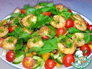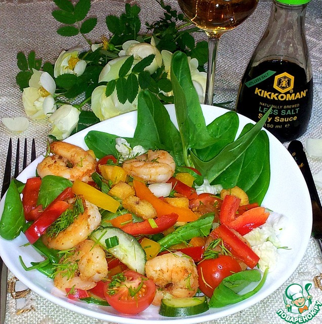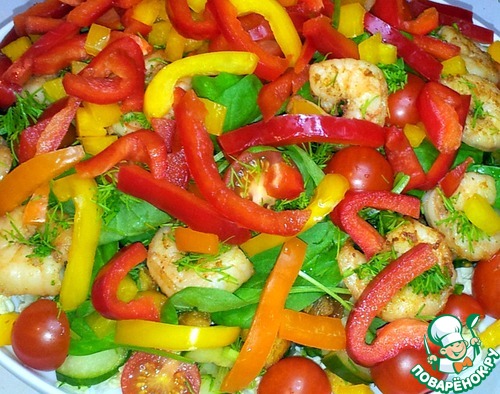 Рецепт «Овощной салат с курицей и креветками»: