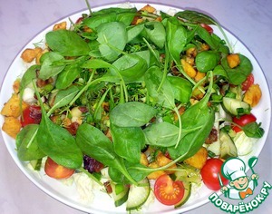 Поверху салата положила листья шпината.