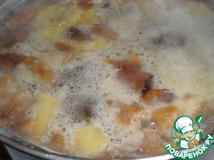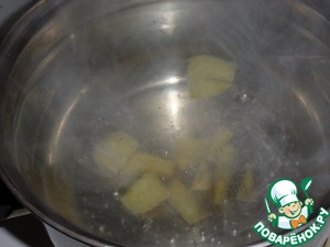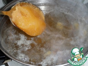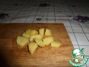 В кастрюлю наливаем воду, доводим до кипения и кладем имбирь. Доводим до кипения.