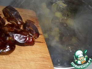 Из фиников удаляем косточки. Очищенные финики кладем в кастрюлю с водой и имбирем. Доводим до кипения и провариваем 3 минуты.