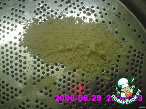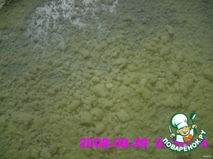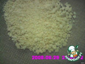 Начинаем перетирать руками круговыми движениями, как будто лепим колобка, до образования крошек размером около 3 мм. Периодически добавляем или муку, или манку, или воду.