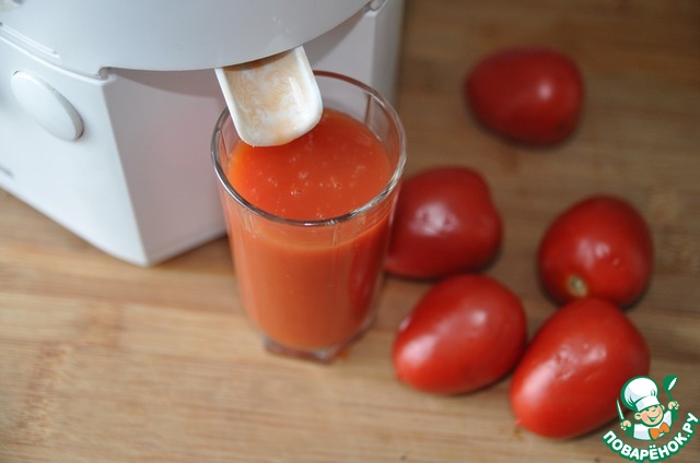 Предварительно готовим свежевыжатый томатный сок в соковыжималке.