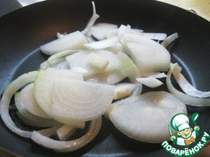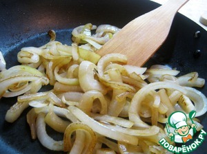 Разогреваем на сковороде растительное масло и обжариваем лук до лёгкой золотистости (остальное дойдёт в духовке).