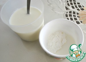 Начинаем варить крем. Отмеряем молоко. Крахмал разводим небольшим количеством холодного молока.