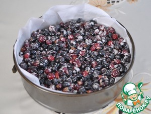 Смородину почистить, помыть, дать стечь воде и перемешать с 1 ст. л. крахмала. Высыпаем ее по верх крема.